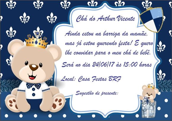 25 Convites Ursinho PrÃÂncipe Azul Marinho Com Envelope E Tag . Compre-o no Mercado Livre por R$ 25,00 - Compre em 12x. Encontre mais produtos de Brinquedos e Hobbies, Ar Livre, Malabares e Festas, Festas , Convites. produto.mercadolivre.com.br